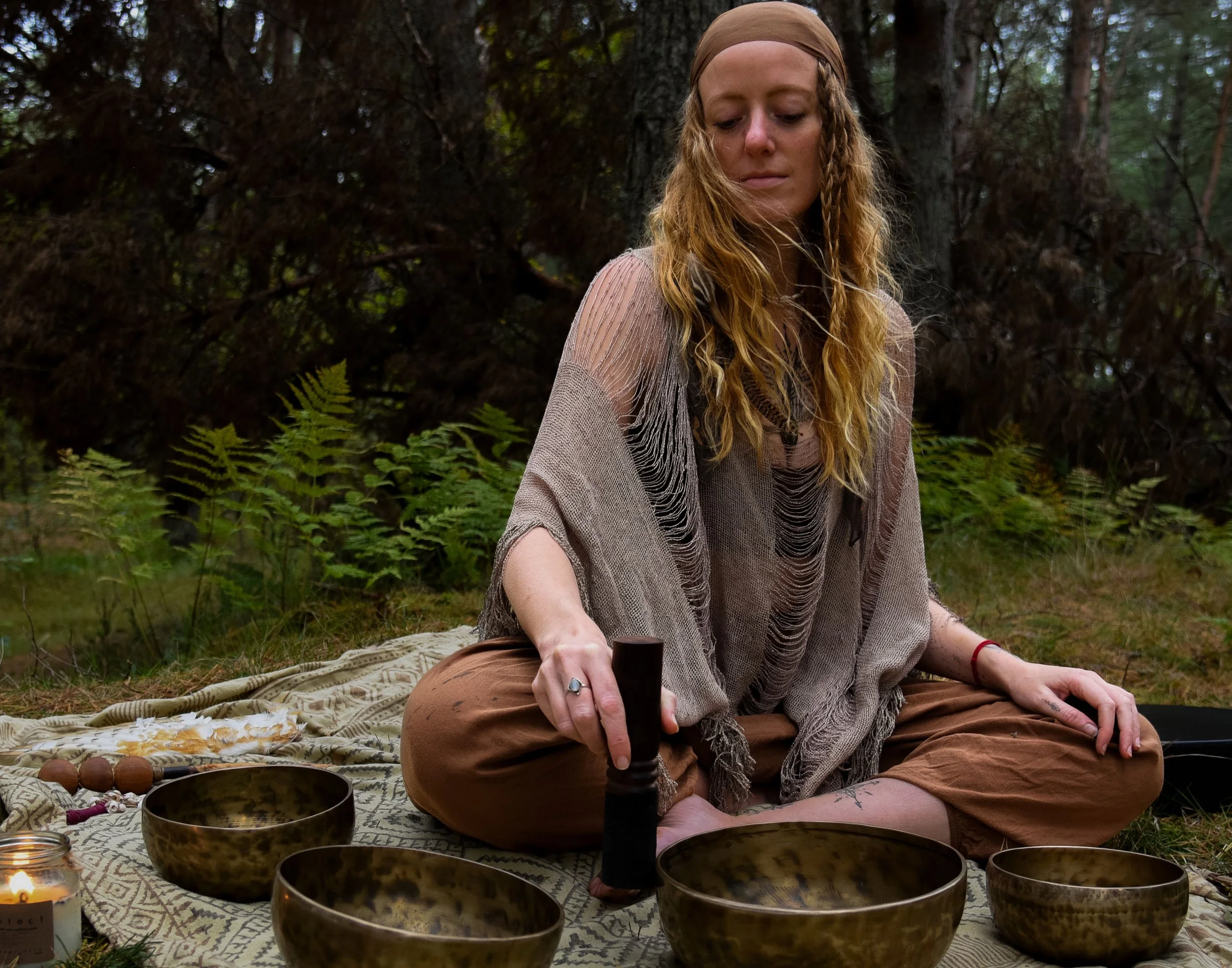 Skye uses tibetan bowls, shamanic drums, rattles, chimes and tuning forks to harmonise the energy field and support the release of any physical or energetic blockages.